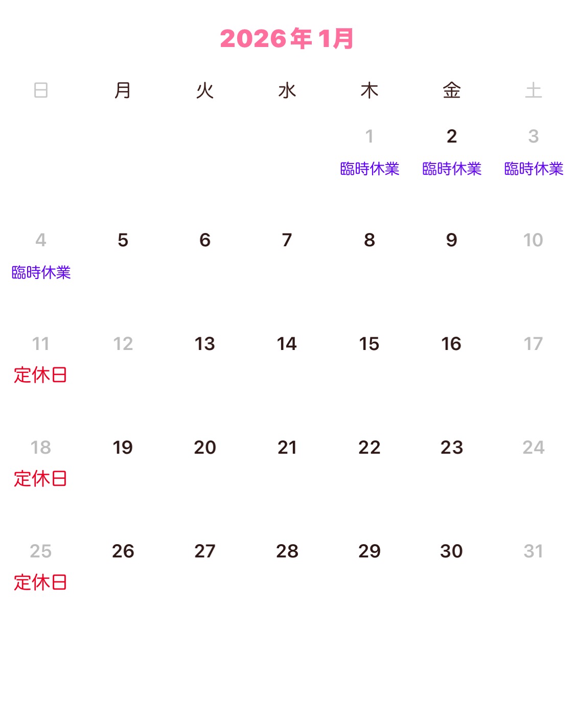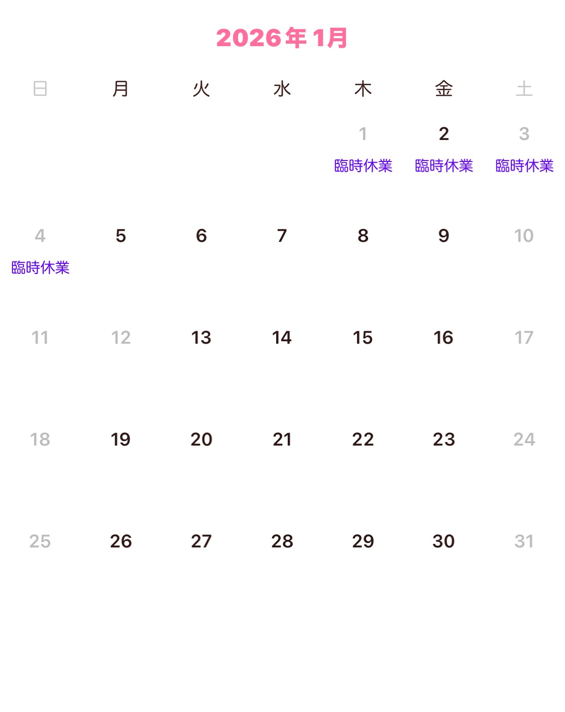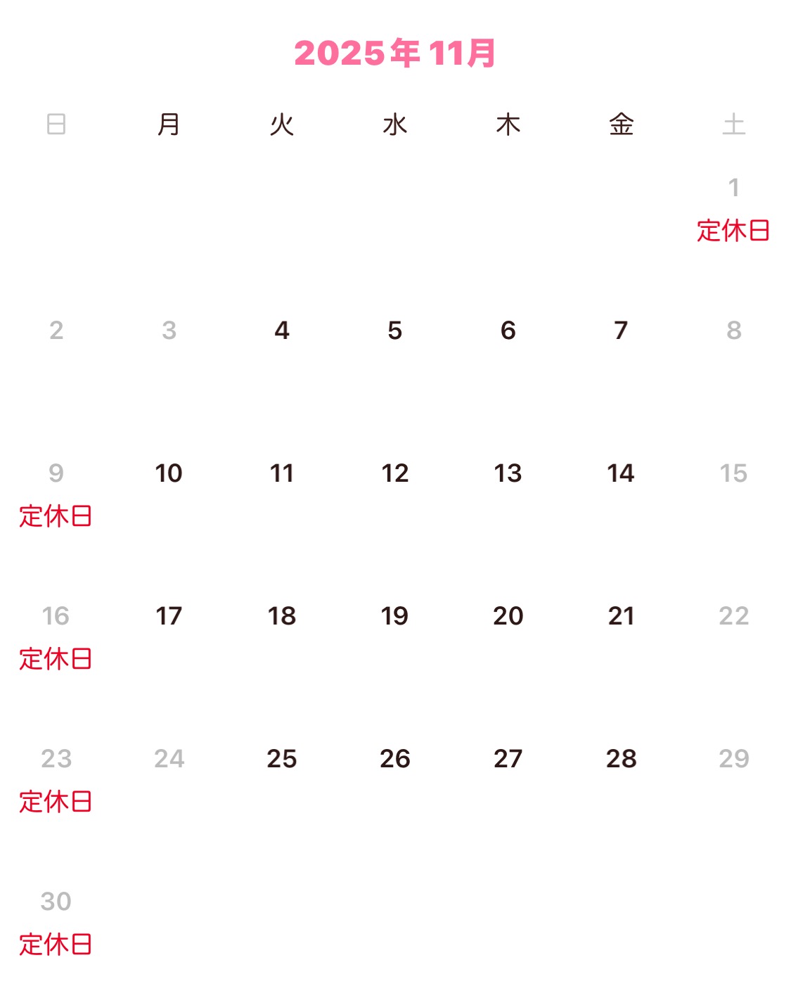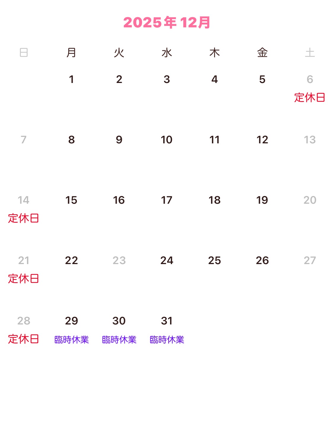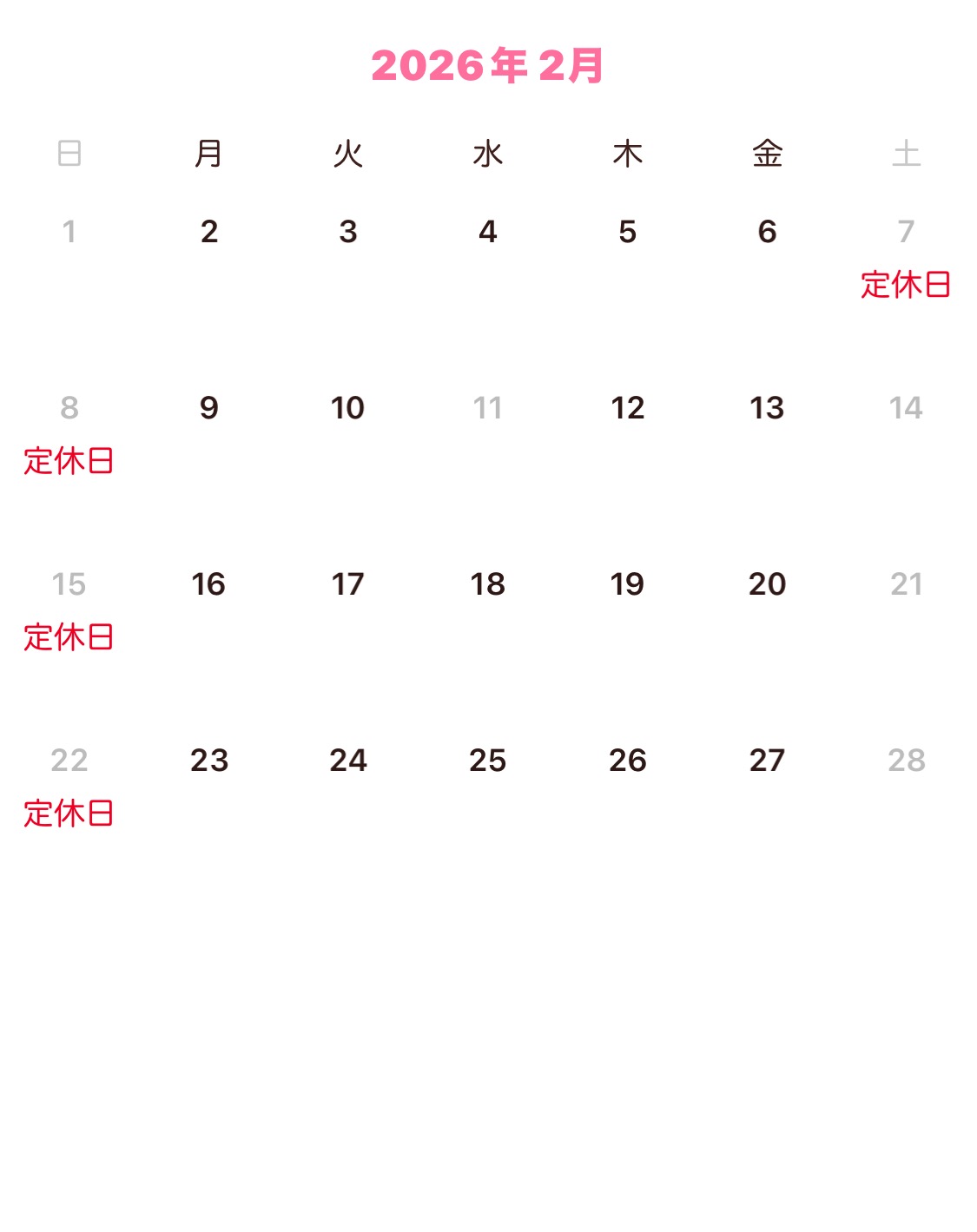 営業日カレンダー